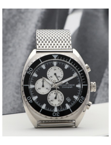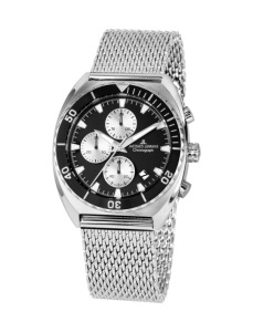 Ekskluzywny zegarek Jacques Lemans Retro JL 1-2041E będzie najlepszym wyborem dla lubiącego sportowy szyk mężczyzny. Koperta o szerokości 41 mm jest wykonana ze stali nierdzewnej. Ciemny cyferblat komponuje się z jasnym wykończeniem koperty oraz indeksami i wskazówkami. Zegarek wyposażony w datownik. Na cyferblacie znajdują się subtarcze chronografu. Ciekawym rozwiązaniem wizualnym jest skala minutowa wokół szkiełka zegarka. Całość uzupełniona jest gustowną bransoletą mesh. Zegarek wyposażony jest w bardzo precyzyjny mechanizm kwarcowy. Zegarek posiada wodoszczelność 100M., co oznacza, że można kąpać się bez konieczności zdejmowania go. Zapakowany w oryginalne opakowanie i objęty 2-letnią gwarancją producenta.