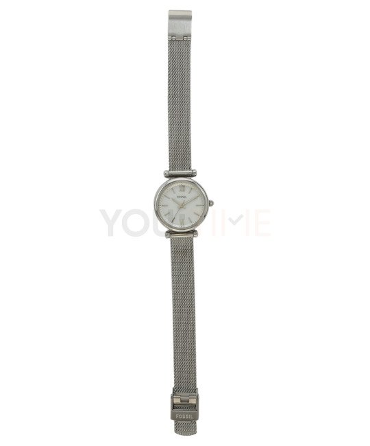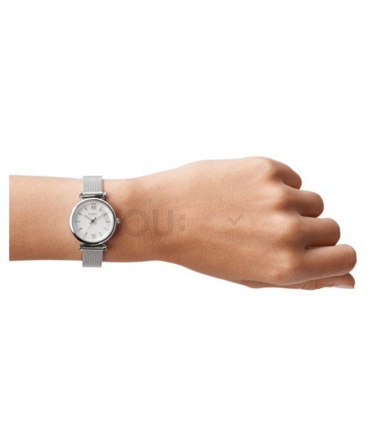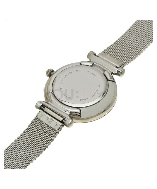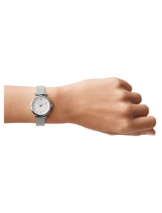 Fossil ES4432 Carlie to bardzo kobiecy czasomierz idealny dla kobiet lubiących niewielkich rozmiarów zegarki. Całość została zachowana w srebrnej kolorystyce.