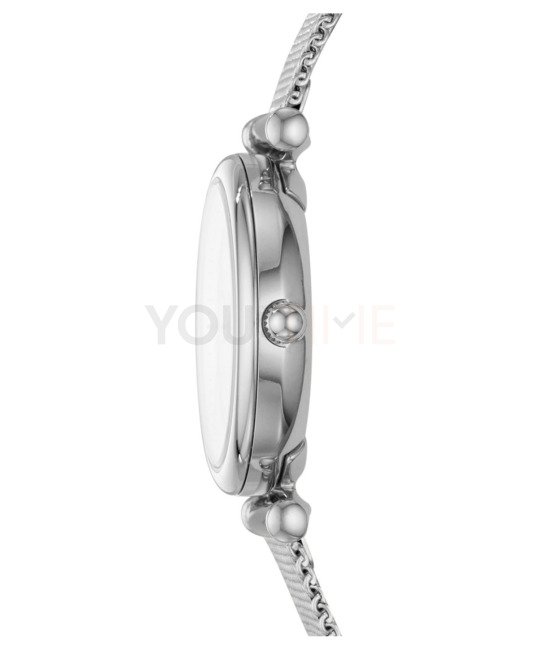 Okrągła, stalowa koperta została zawieszona na stalowym pasku typu mesh, co dodaje delikatności i kobiecego uroku. Tarcza została wypełniona masą perłową, a całość przed uszkodzeniem chroni szkło mineralne charakteryzujące się wysoką odpornością na zarysowania i uszkodzenia. Sercem zegarka jest dokładny mechanizm kwarcowy zasilany baterią. Wodoszczelność w zegarku ustalono na poziomie 5 ATM, co oznacza, że zegarek jest odporny na większe zachlapania na przykład podczas kąpieli.