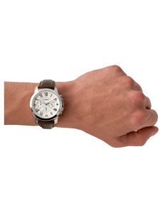 Fossil Grant FS4735 to zegarek męski w ciekawej oprawie. Brązowy pasek ze skóry został zestawiony ze stalową kopertą. Na czytelnej, białej tarczy umieszczono oznaczenia godzin w postaci cyfr rzymskich. Dodatkowo zastosowano tutaj chronograf oraz czas dobowy. Dzięki warstwie luminescencyjnej na wskazówkach odczytanie godziny jest jeszcze łatwiejsze. To pokaźnych rozmiarów zegarek, który będzie pasował zarówno na co dzień, jak i jako kontrast do bardziej formalnych strojów. Czasomierz ma wodoszczelność równą 5 atmosferom, co oznacza, że można z nim myć ręce, a nawet brać prysznic. Szkiełko mineralne zapewnia ochronę tarczy, natomiast mechanizm kwarcowy jest odpowiedzialny za precyzyjne działanie. Do zegarka dołączona jest dwuletnia gwarancja i oryginalne opakowanie Fossil.