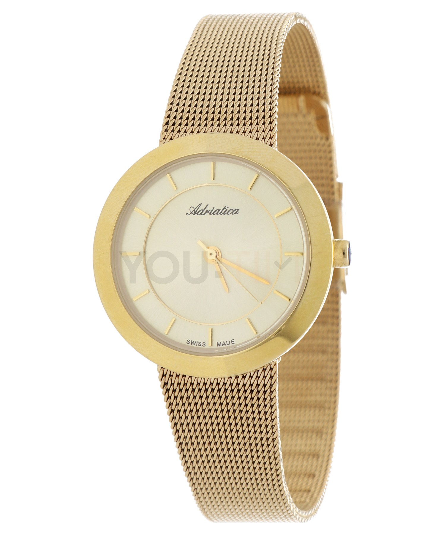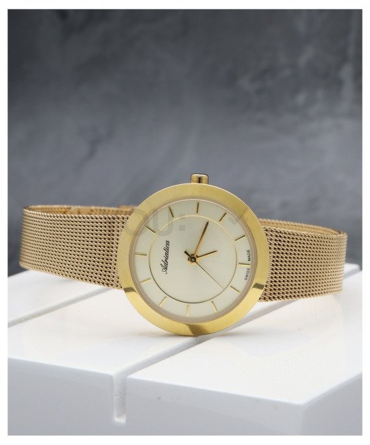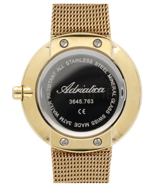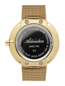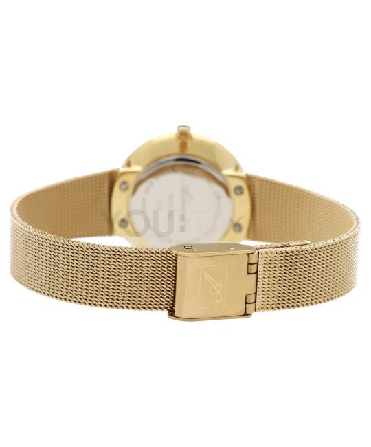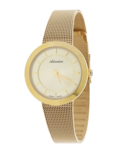 Delikatna bransoleta typu mesh i oszczędna tarcza idealnie komponują się z połyskującym pierścieniem. Proste indeksy są dodatkową ozdobą tego modelu. Szkiełko mineralne jest elastyczne i odporne na stłuczenia, dzięki czemu zegarek będzie służył przez lata. W zegarku zastosowano dokładny szwajcarski mechanizm kwarcowy - Ronda 763. Wodoszczelność została ustalona na poziomie 30 m, co oznacza, że zegarek jest chroniony w przypadku zachlapań.