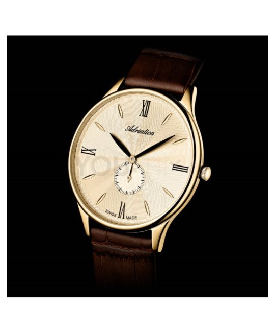 Elegancki zegarek Adriatica A1230.1261QXL doskonale będzie komponował się z każdym formalnym strojem męskim. Klasyczna kolorystyka łącząca stalową kopertę pokrytą złoceniem z brązowym, skórzanym paskiem prezentuje się niezwykle ponadczasowo. Zegarki szwajcarskie Adriatica to synonim doskonałej jakości.